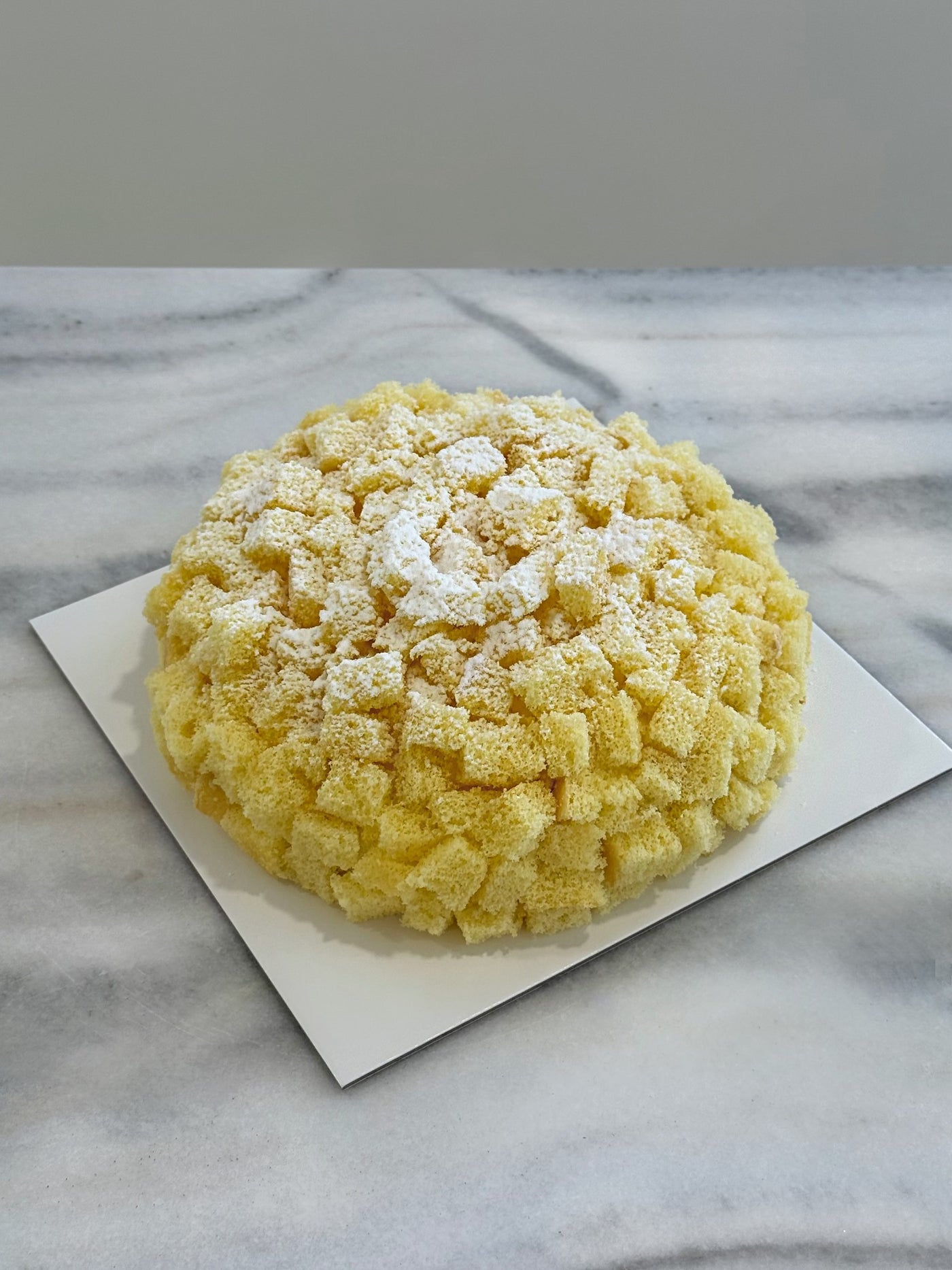 La Torta Mimosa est un gâteau italien traditionnel préparé pour célébrer la Journée Internationale des Femmes, le 8 mars. Son nom et son apparence s’inspirent de la fleur de mimosa, symbole de cette journée en Italie.